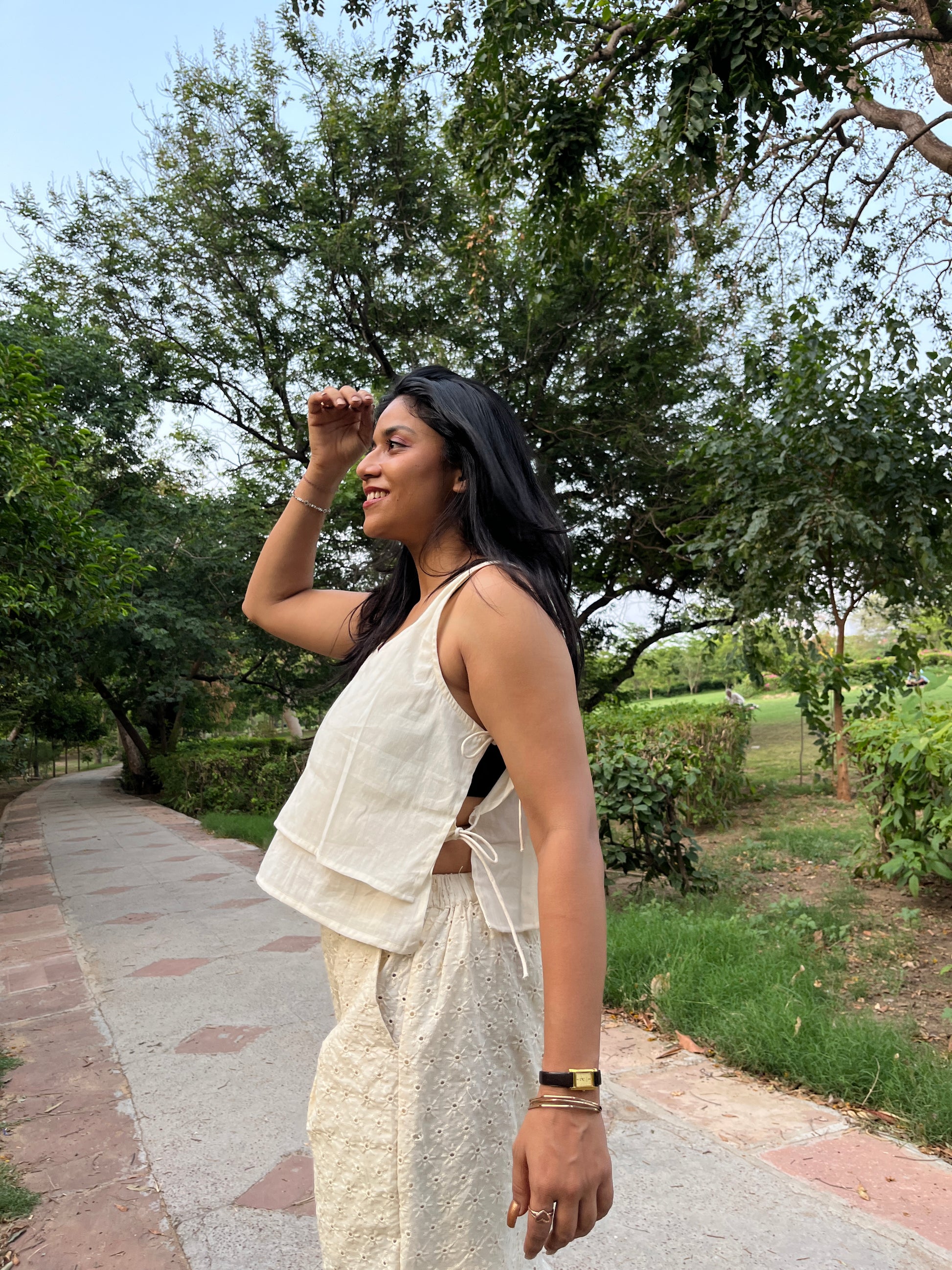 Delicate, dreamy, and just a little flirty - The Mariposa Slip Top is your wardrobe’s new soft statement piece. Designed in breezy cotton with a flattering scoop neckline, this top is all about the details: adjustable side string bows, a slight flare, and that barely-there feel you’ll want to live in.